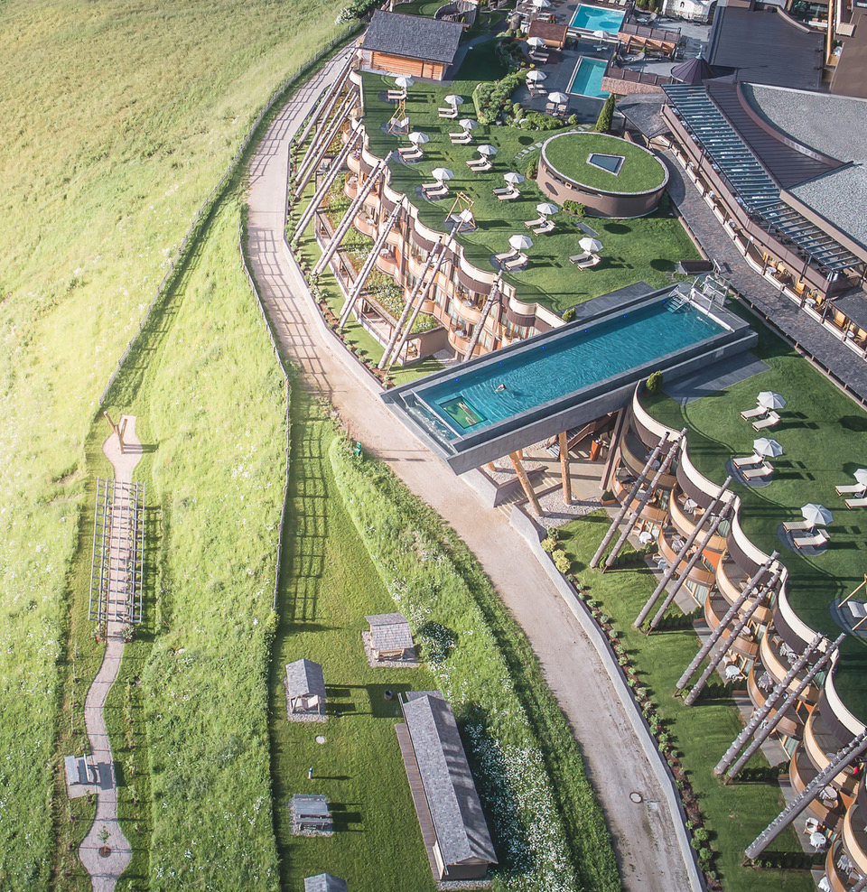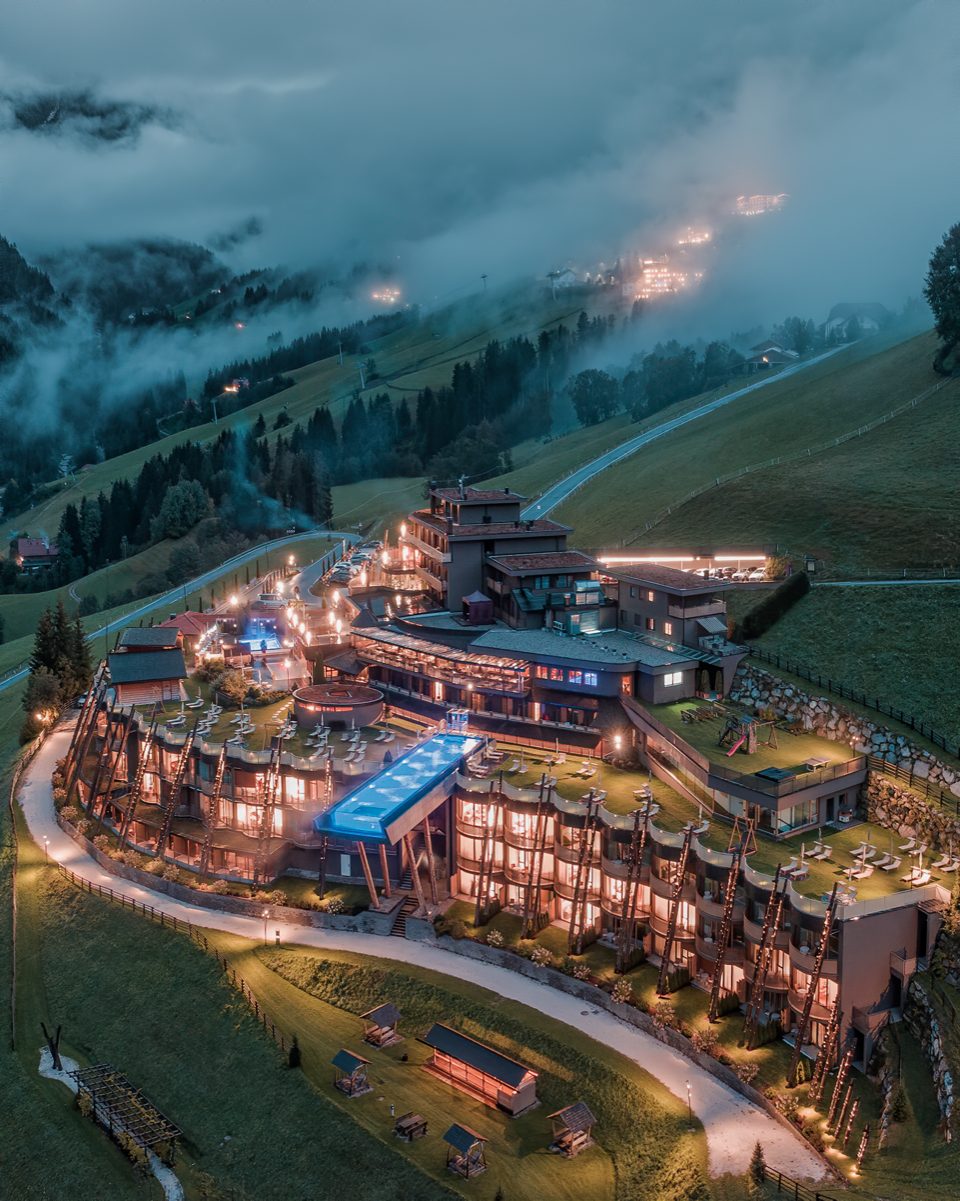 Architektonisches Herzstück ist die freischwebende Wellness-Plattform Sky Spa Heaven & Hell, die mit ihrer spektakulären Formensprache neue Perspektiven eröffnet – auf die umliegende Bergwelt ebenso wie auf das eigene Innere. Der 25 Meter lange Sky Pool scheint über den Bergwiesen zu schweben, während Wasser, Himmel und Gipfel zu einer Einheit verschmelzen. Ein Ort, der Freiheit spürbar macht und dennoch Teil eines stimmigen Gesamtkonzepts bleibt.